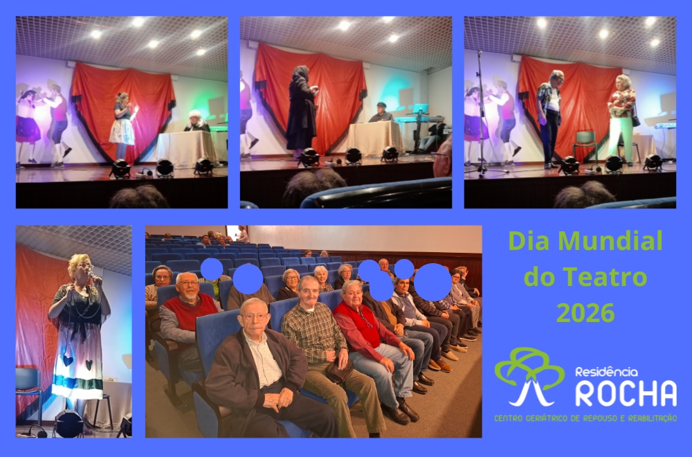 Dia Mundial do Teatro < voltar A Residência Rocha foi convidada para assistir à apresentação de pequenas rábulas apresentadas pelos alunos da disciplina de teatro da Universidade Sénior de Benavente - Polo de Samora Correia, no âmbito do Dia Mundial do Teatro.A deslocação ao Palácio do Infantado em Samora Correia na tarde do dia 27 de março foi efetuada em transporte cedido pelo Grupo Desportivo de Samora Correia, ao qual agradecemos a cortesia.